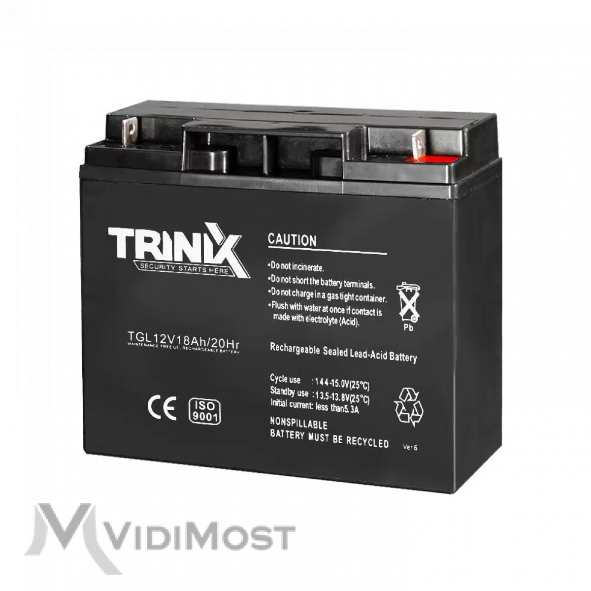 Акумуляторна батарея Trinix TGL12V18Ah/20Hr GEL ємністю 18 Аг, з вихідною напругою 12 В, тип – гелева (GEL).
