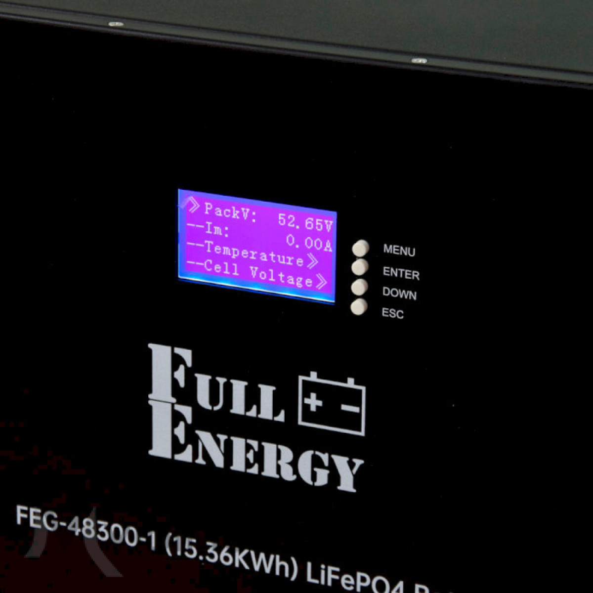 Літій-залізо-фосфатний акумулятор Full Energy серії FEG виконаний в герметичному корпусі і зроблений за технологією LiFePO4. У технології використовується мінерал сімейства олівін, він зустрічається в природному середовищі, не токсичний, термостійкий. Місткість - 300 A•год. Напруга – 51.2 В. Розміри: 413 x 233 x 825 мм. Вбудований LCD екран із зазначенням рівня заряду акумулятора.