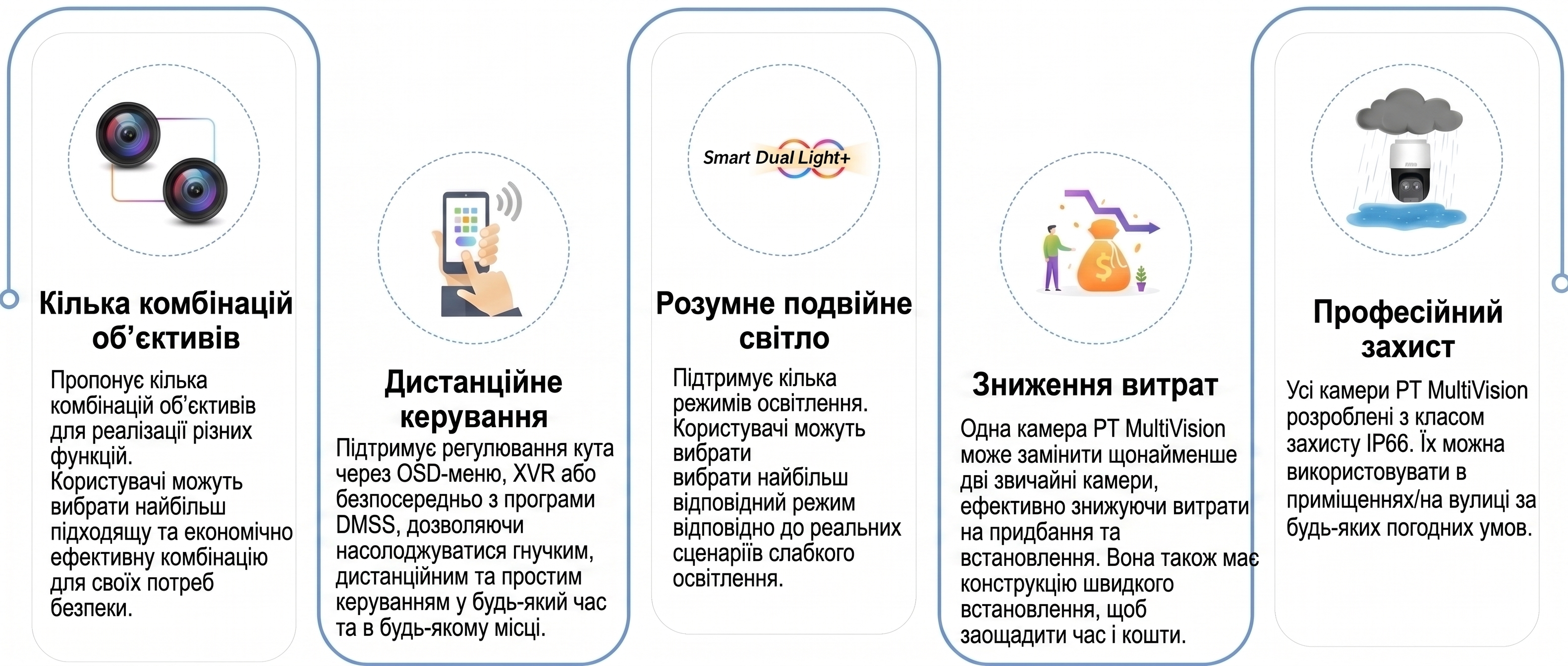 Новий рівень панорамного спостереження. Завдяки інтелектуальним характеристикам, PT MultiVision забезпечує повний контроль над територією, поєднуючи кілька ракурсів в одному рішенні.