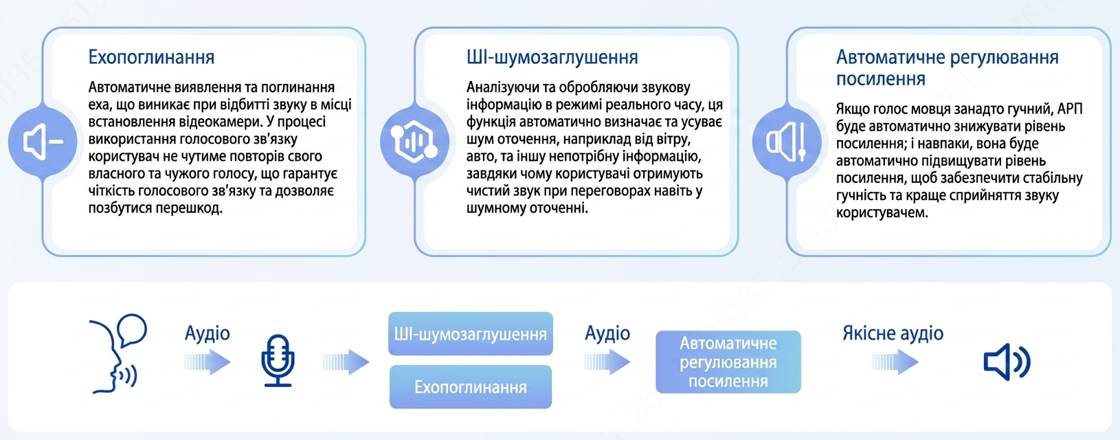 Камери WizColor підтримують технологію двох мікрофонів. Це значно покращує чіткість звуку та дальність його захоплення, забезпечуючи ефективне аудіо- та відеоспостереження.