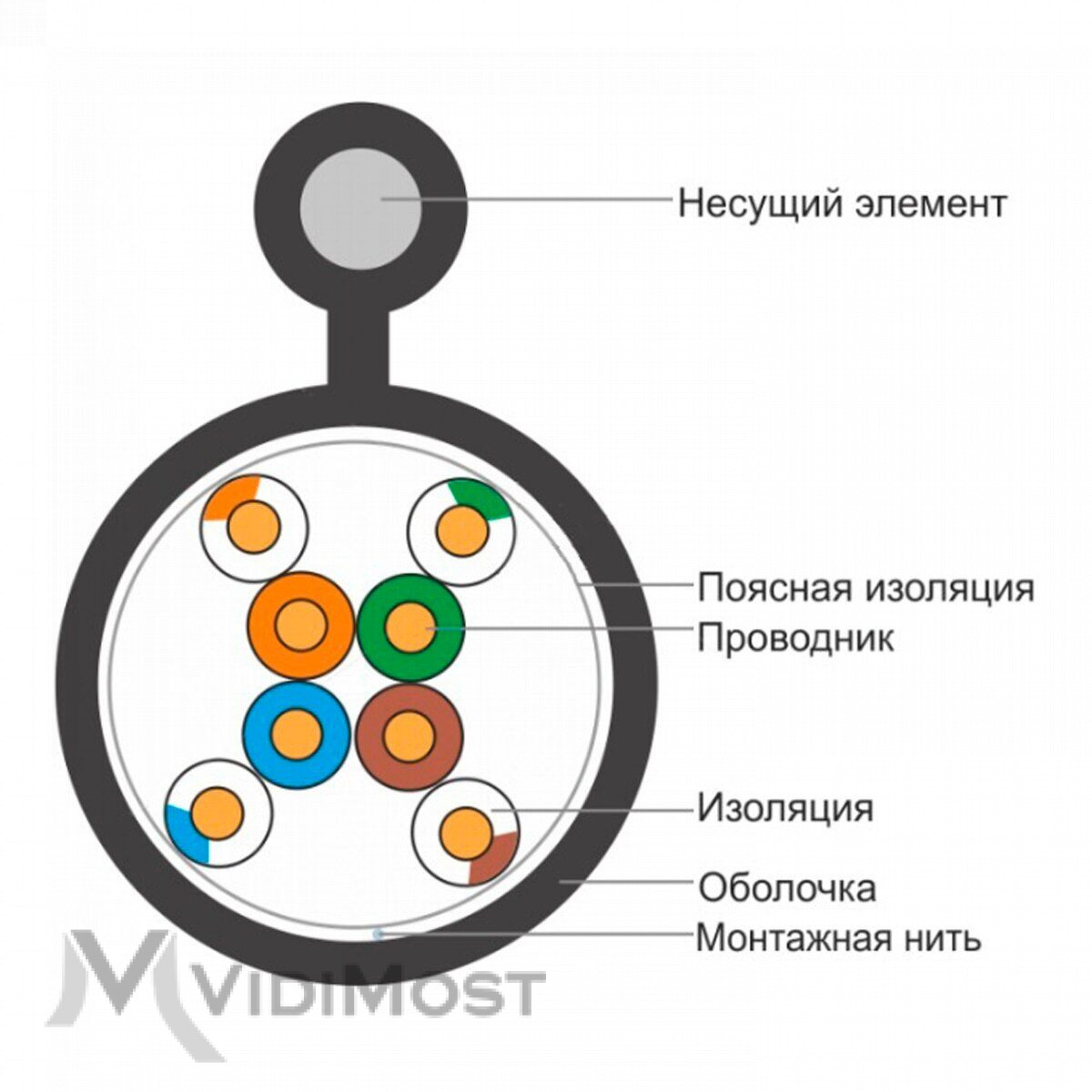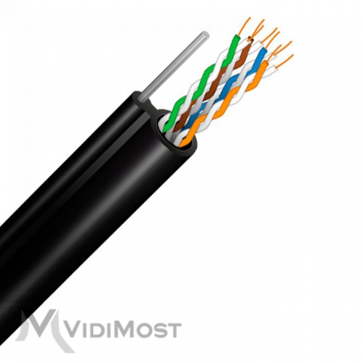 UTP CAT5e PE-M - зовнішній кабель типу «кручена пара» для передачі сигналу в телевізійних і комп'ютерних мережах. Маркування «PE-M» кабелю говорить про те, що тут є трос на відміну від звичайної кручений пари, значно підвищує міцність на розрив. Таким чином можна тягнути кабель по повітрю на великі відстані, не боячись, що при сильному вітрі він порветься. Продається він в стандартній бухті 305 метрів. І у нас його можна придбати як в роздріб, так і оптом за найкращою ціною. А якщо вам підійде кабель для внутрішнього використання - шукайте в каталозі «Вита пара».