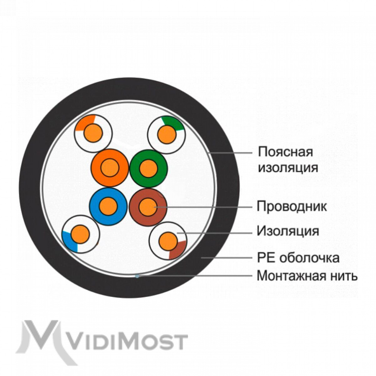 Finmark UTP CAT5e PE - зовнішній кабель типу «вита пара», призначений для прокладки в шахтах, колекторних, каналізації, а також по стінах будівель. Головною особливістю кабелю є міцна поліетиленова оболонка чорного кольору, яка відмінно переносить агресивну зовнішню середу. У всьому іншому - стандартний кабель з 4 парами, які для легкості підключення промарковані звичним кольором. Крім того, у нас можна придбати "виту пару" для внутрішньої прокладки і зовнішні кабелі з тросом.