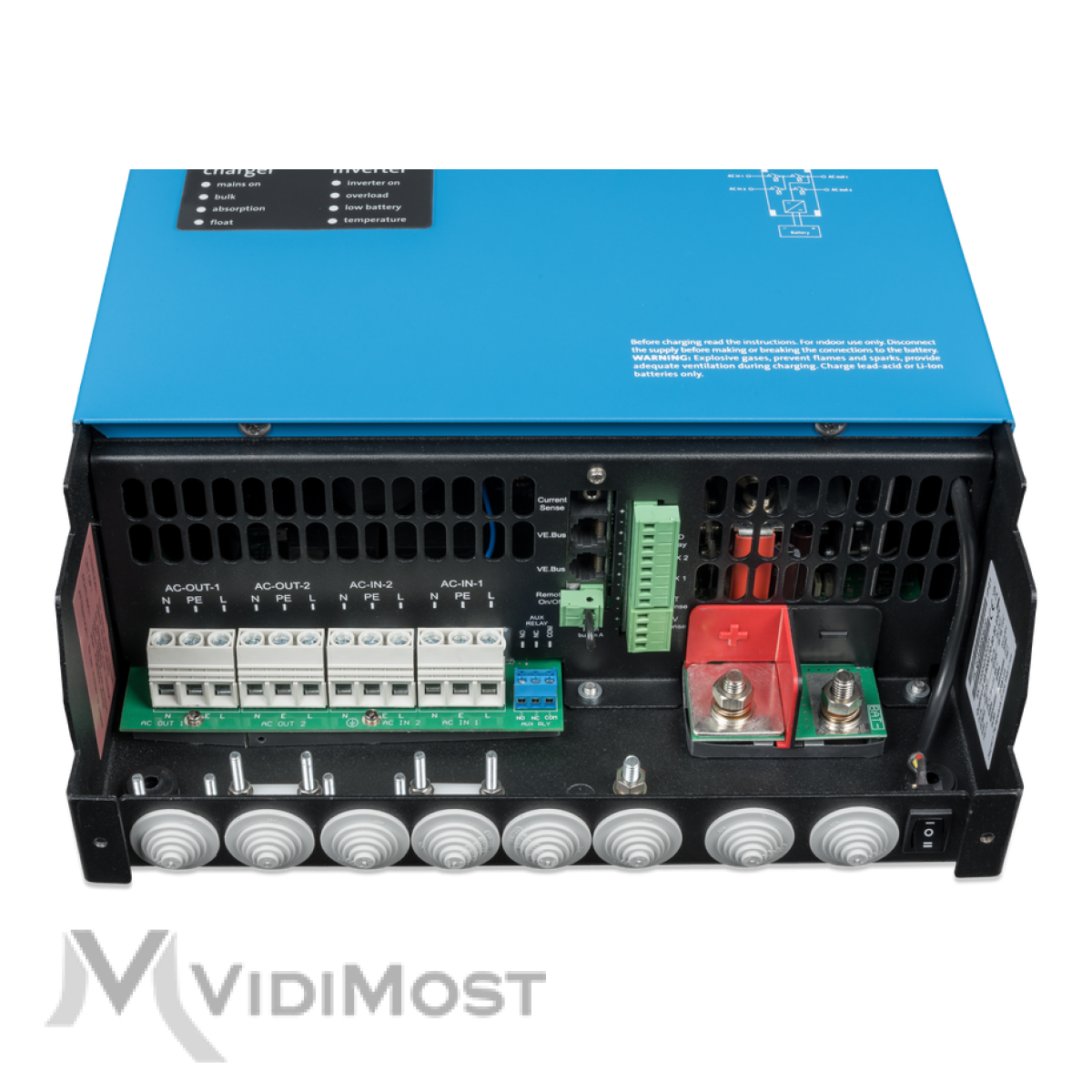 | Порт зв'язку VE.Bus | Для паралельної (не для моделей на 8 К, 10 К та на 15 К) та трифазної роботи, зовнішнього моніторингу та системної інтеграції |