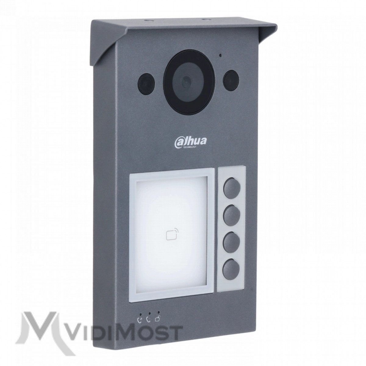 IP виклична відеопанель з камерою на 2 Мп, яка передає зображення з кутом огляду - 125 градусів. Зв'язується з домофонною системою та має Wi-Fi підключення. Для роботи в темний час доби камера має функцію ICR, а також функцію двостороннього аудіозв'язку. Управляти панеллю можна навіть за допомогою мобільного телефону і отримувати дзвінки на мобільний додаток, також є індикація голосу. На фронтальній частині є Mifare-зчитувач, призначений для швидкого доступу за допомогою ключа. Панель виконана в міцному корпусі з алюмінієвого сплаву, має вологозахист IP65 і захист від вандалізму IK08. На корпусі також є чотири вбудовані механічні кнопки. Підтримується робота без монітора.