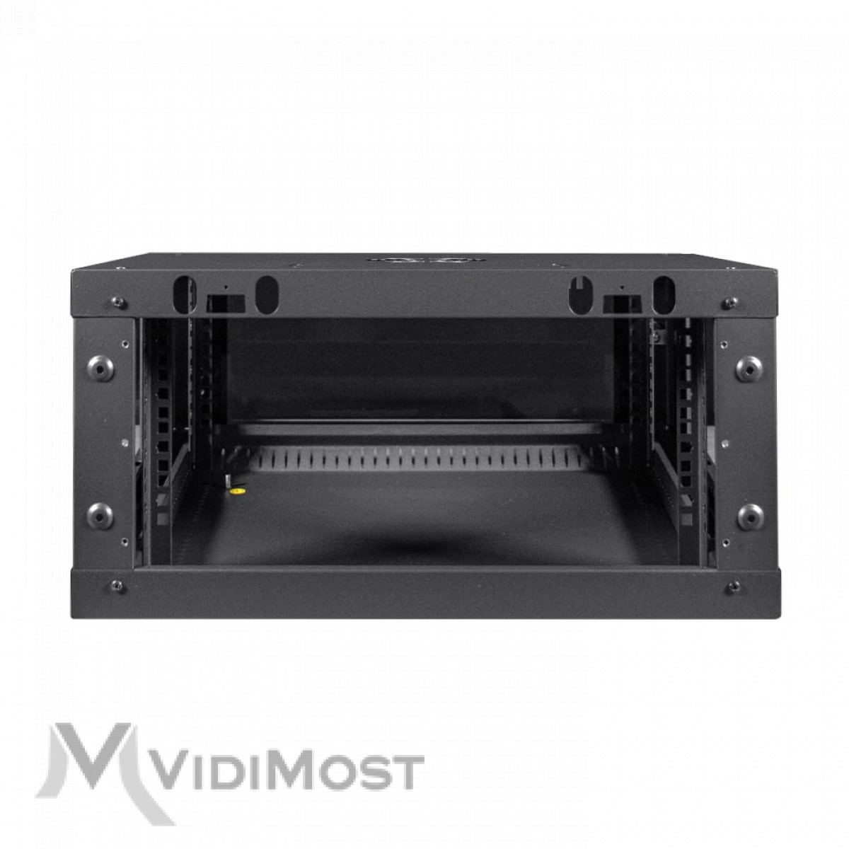 Шафа виконана з високоякісної сталі, має дверцята з замком (ключі входять у комплект) для забезпечення безпеки обладнання та захисту від стороннього доступу. Максимальне статичне навантаження шафи становить до 55 кг, що дозволяє розмістити як активне обладнання (комутатори, маршрутизатори), так і блоки живлення або накопичувачі.