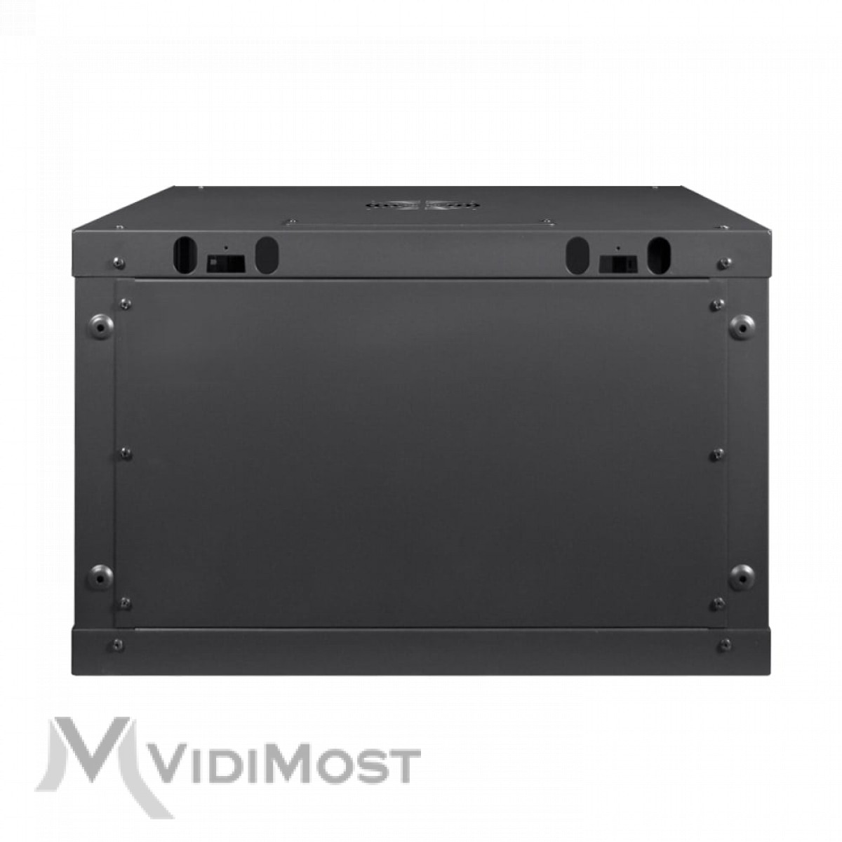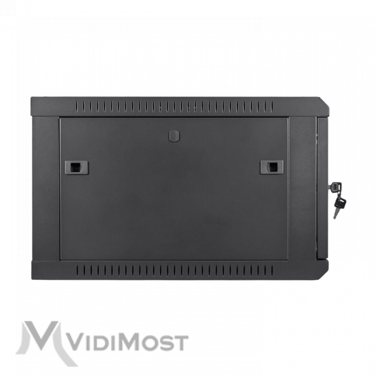 Каркас шафи виготовлений із суцільнозварної сталі, що забезпечує високу жорсткість і довговічність. Передня дверцята обладнана замком (ключі входять у комплект) та має можливість швидкого демонтажу або переналаштування сторони відкривання без використання інструментів. Максимальне статичне навантаження до 55 кг дозволяє розміщувати активне мережеве обладнання, сервери, накопичувачі та інші компоненти системи.