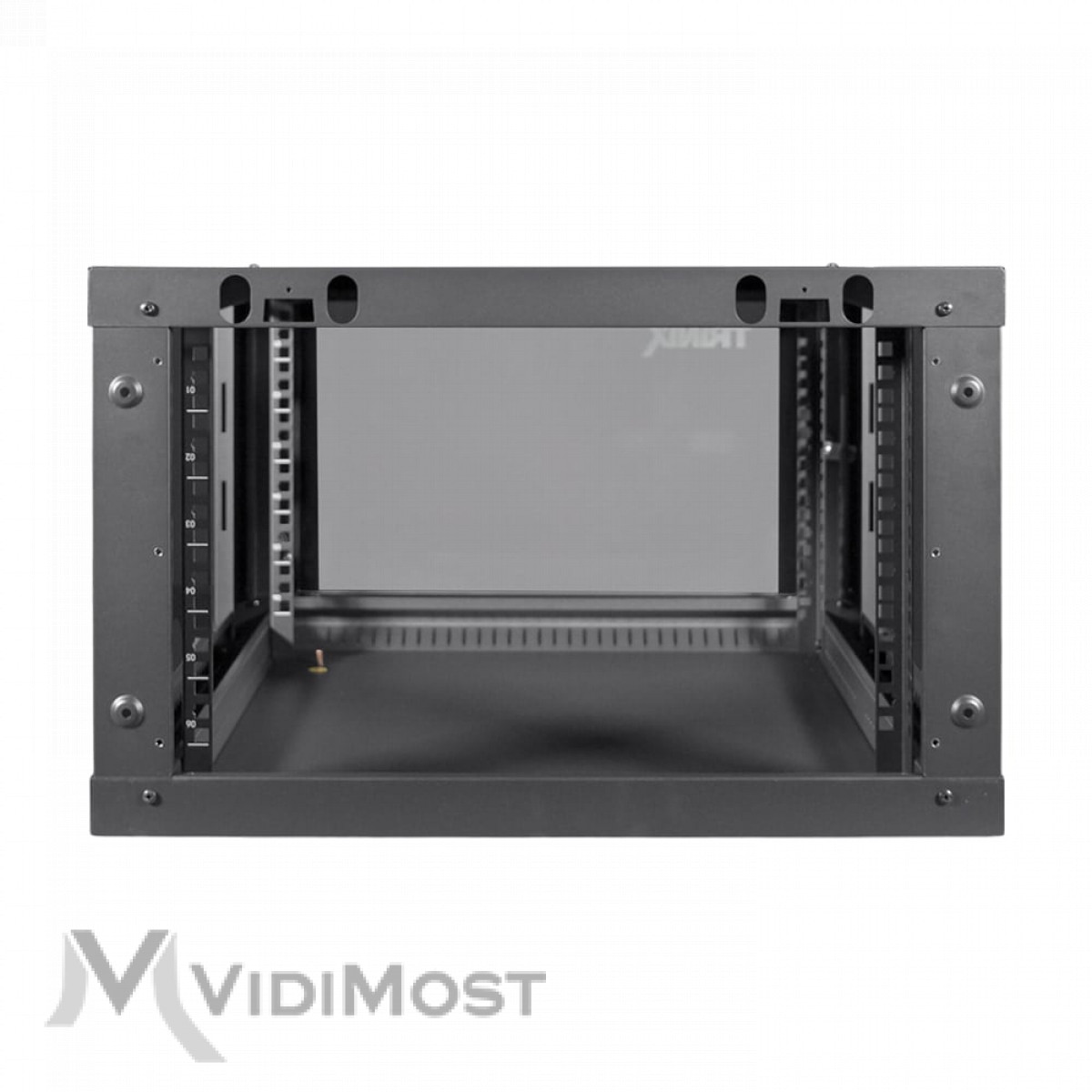 Trinix TRX-6U/600x600x370 Black — настінна комутаційна шафа формату 19″ з висотою 6U, призначена для установки мережевого, серверного або відеоспостережного обладнання. Завдяки габаритам 600 мм (ширина) × 600 мм (глибина) × 370 мм (висота), вона оптимально підходить для монтажу на стіні в серверних, кімнатах охорони чи технічних приміщеннях.
