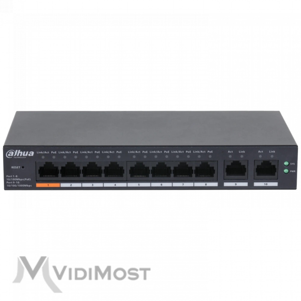 Dahua DH-CS4010-8ET-60 - це PoE світч для забезпечення живлення IP-камер з функцією Power over Ethernet. IP камери з цією технологією не потребують кабелі живлення, тим самим значно спрощується їх монтаж і обслуговування. Пристрій оснащений 8 портами PoE. Підтримує декілька стандарту PoE - IEEE802.3af і IEEE802.3at, Hi-PoE. Для зручності користувачів пристрій оснащений світлодіодами індикації стану. Крім передачі електроживлення, світч також може використовуватися в якості подовжувача, збільшуючи відстань передачі сигналу на 250 метрів. Підтримує самодіагностику MDI / MDIX.