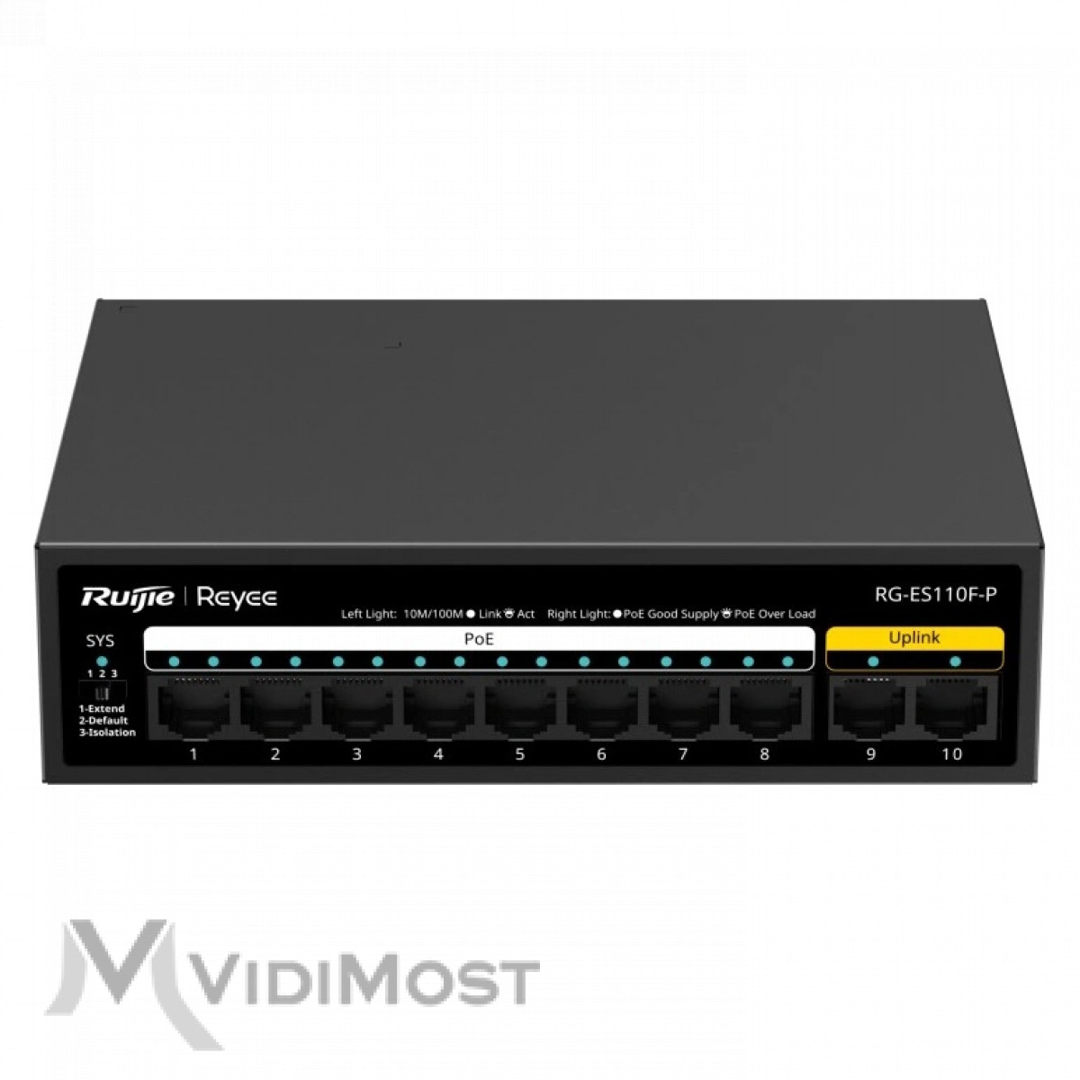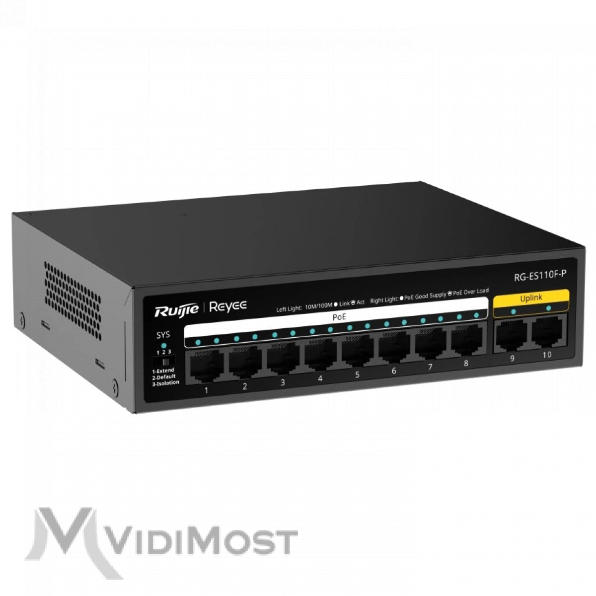Гігабітний некерований хмарний комутатор з 8 портами PoE. Економічні комутатори Smart Cloud, що керуються зі хмари. Розпізнавання IP-камер, унікальна цінність мережі відеоспостереження. Автоматичне запобігання утворенню петель забезпечує безперервність обслуговування. Управління життєвим циклом у хмарі Ruijie у будь-який час та в будь-якому місці. Бюджет PoE 110 Вт. Комутаційна здатність 2 Гбіт/с. Швидкість пересилання 1.48 мп/с.