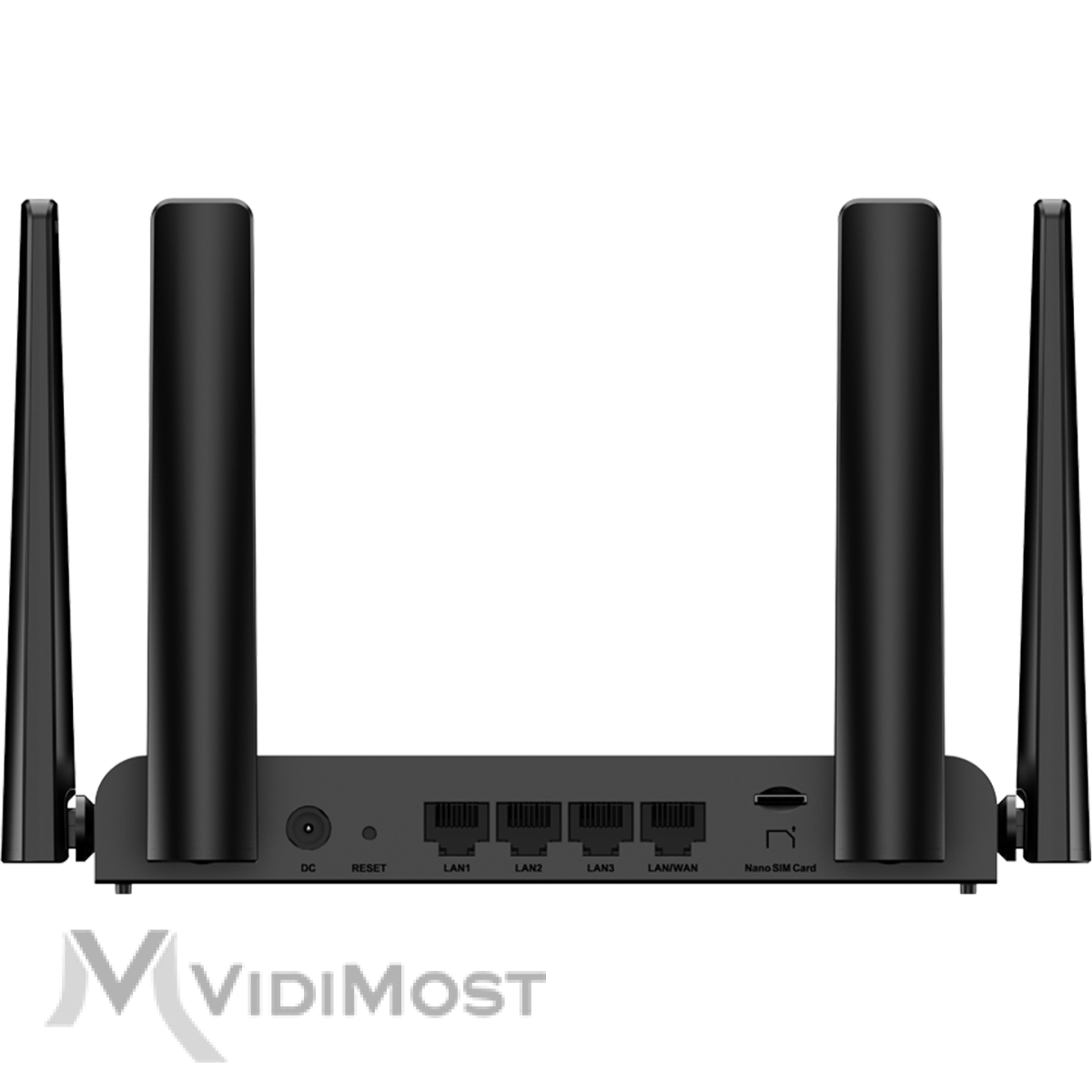 Роутер підтримує роботу з SIM-картами українських мобільних операторів та забезпечує швидкість передачі даних до 150 Мбіт/с у мережі LTE (Cat.4). Бездротова мережа працює в діапазоні 2.4 ГГц зі швидкістю до 300 Мбіт/с, що достатньо для камер відеоспостереження, реєстраторів, касових терміналів та офісної техніки.