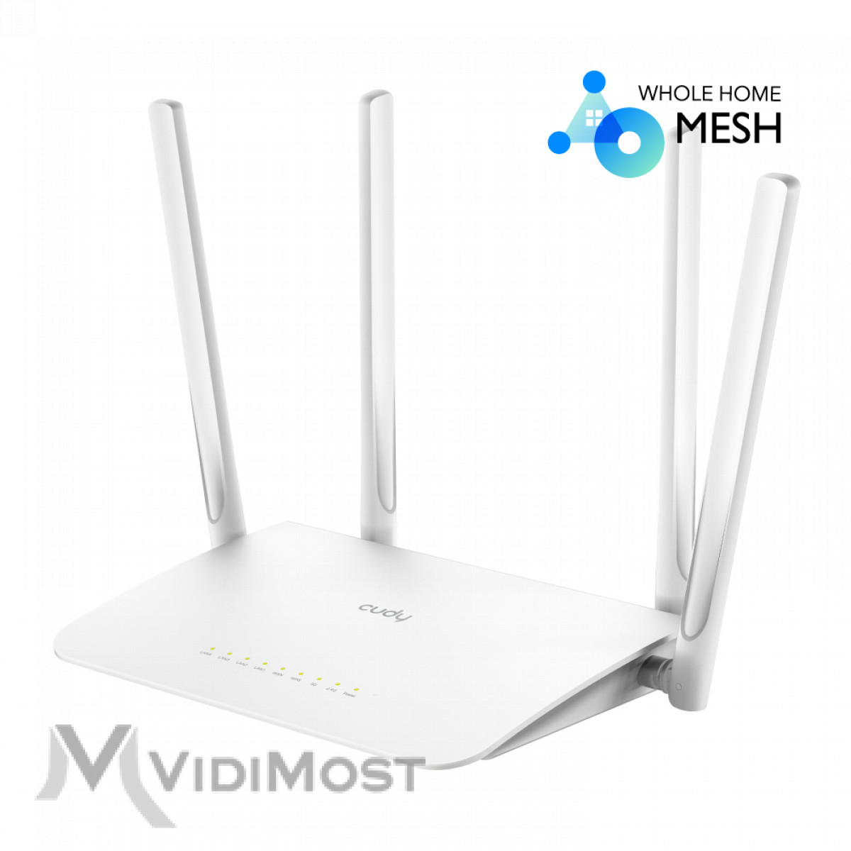 Підтримка технології Cudy Whole Home Mesh розширює зону покриття WiFi для всього будинку. Підтримка Mesh WiFi дозволяє об’єднати декілька WiFi-роутерів чи точок доступу у «безшовну» WiFi-систему, яка створюється для усунення зон зі слабким сигналом та забезпечення безперервного покриття WiFi в усьому домі. Mesh-системи надають більш високу швидкість передачі та надійне з’єднання всіх пристроїв, підключених до мережі. Пристрій, що використовується для створення Mesh-системи, являє собою WiFi-роутер із ретранслятором, з яким дані обмінюються через виділений канал, не займаючи основний WiFi-канал, до якого підключені девайси