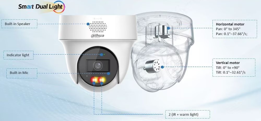 Однією з ключових особливостей цієї камери є технологія Smart Dual Light, яка комбінує звичайну ІЧ-підсвітку та тепле світло для отримання повнокольорового відео навіть у сутінках. При виявленні руху камера автоматично активує біле світло, що дозволяє чітко бачити об’єкти у кольорі і покращує розпізнавання деталей. У темряві, коли об’єкти відсутні, ІЧ-підсвітка забезпечує стандартне нічне бачення без зайвого світлового забрудження.
