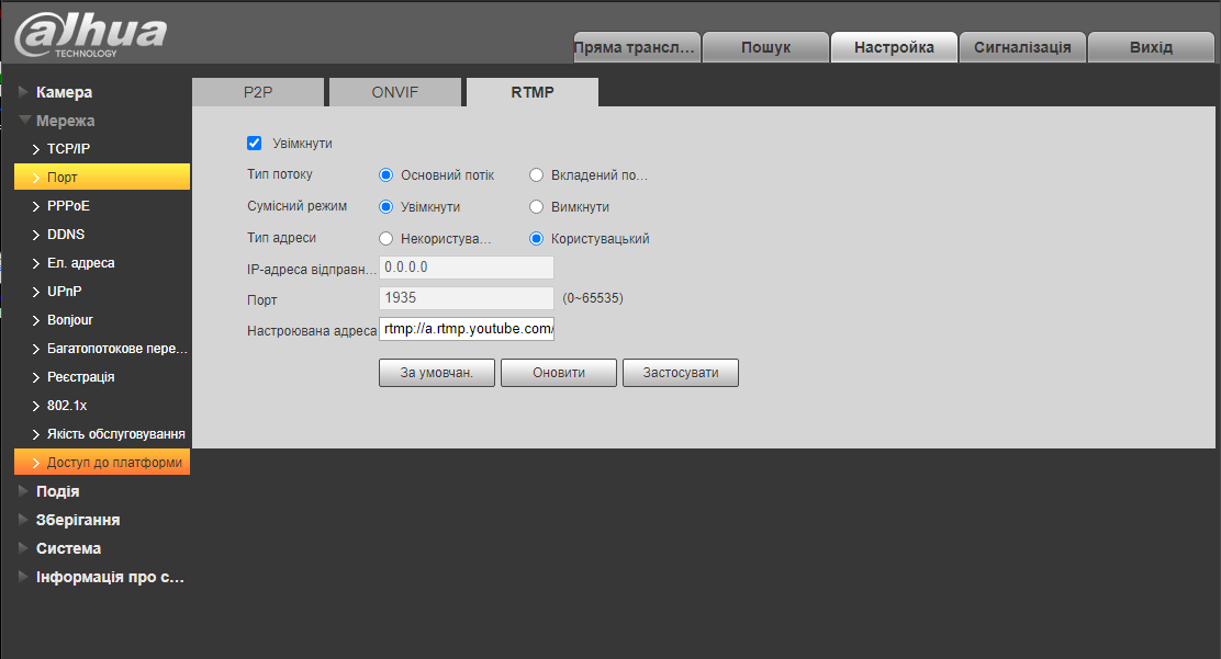 Трансляція на Youtube з камер Dahua без аудіодоріжки