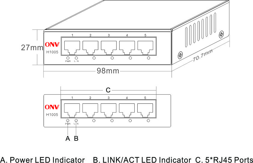 - 100M 5-портовий комутатор (ONV-H1005)