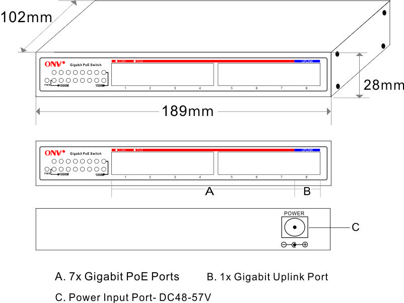 - 8-портовий гігабітний PoE комутатор з 8 портами Gigabit PoE (ОNV-POE33007P)