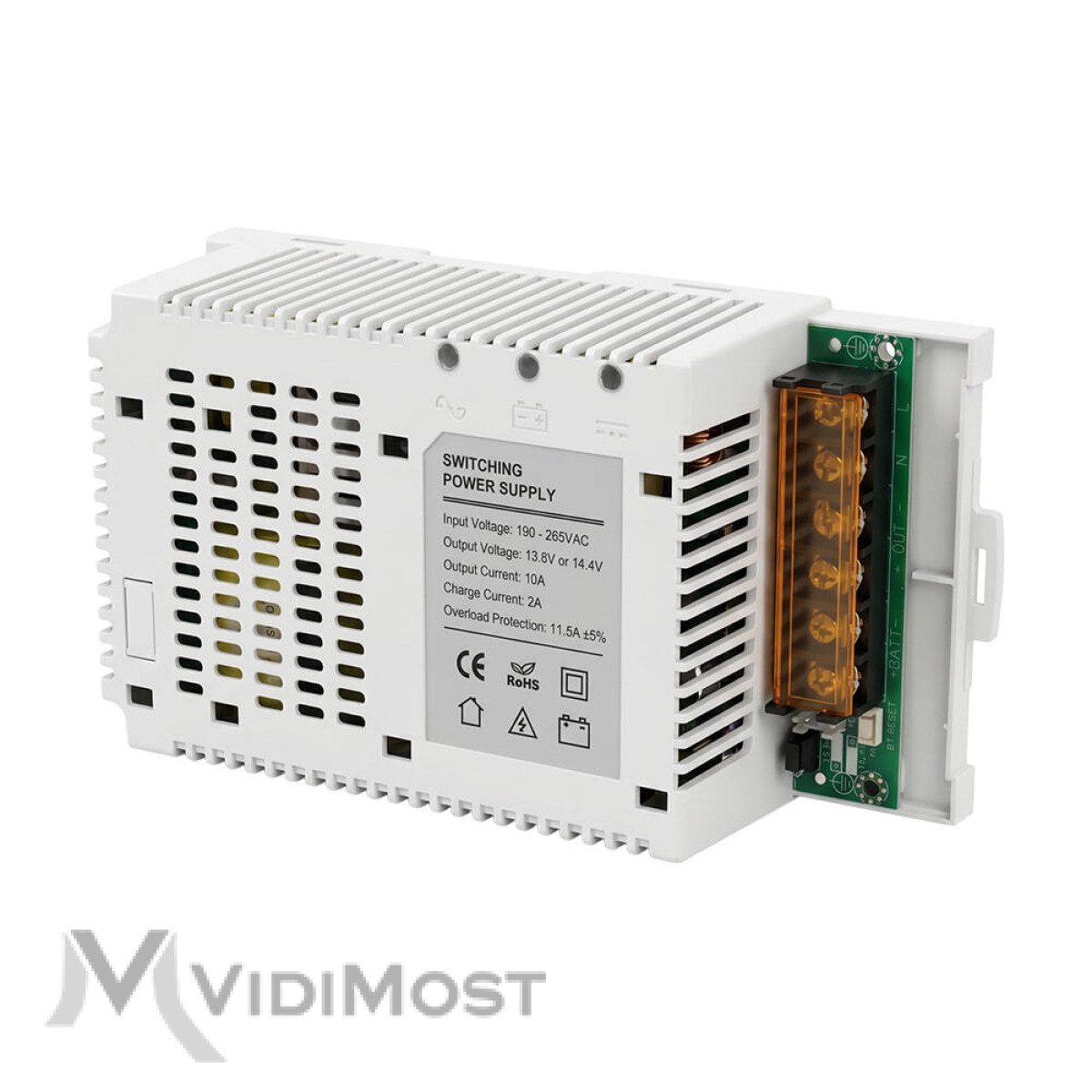 Trinix PSU-1210LED(BOARD) LiFePO4 — плата джерела безперебійного живлення 12 В з LED-індикацією та кріпленням на DIN-рейку, призначена для систем відеоспостереження, сигналізації, СКУД, телекомунікаційного обладнання та автоматики. Підходить для встановлення в електрощити, шафи керування та монтажні бокси.