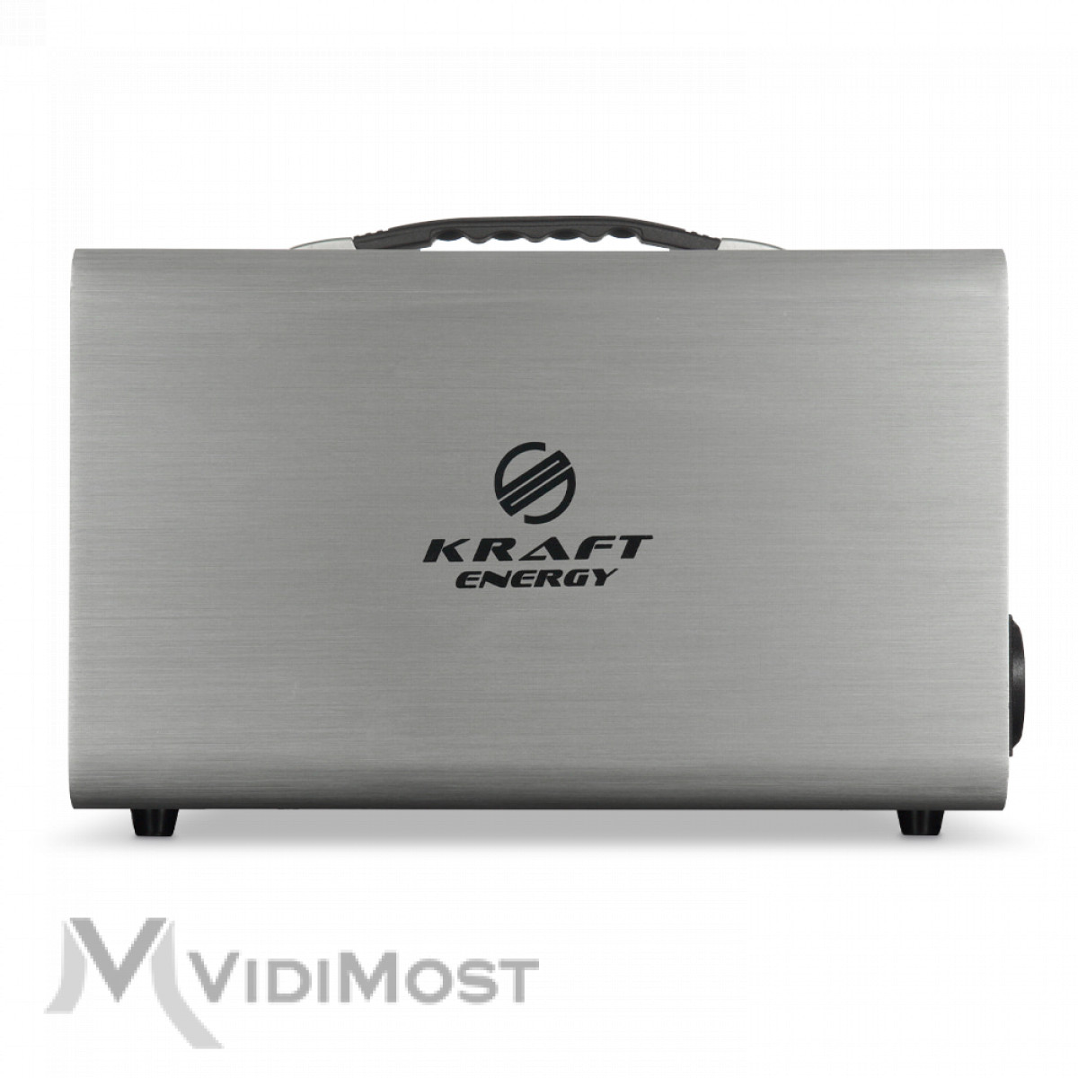 Портативна зарядна станція Kraft KPS-500 з номінальною потужністю 500 Вт, з вихідною напругою 230 В. Вбудована акумуляторна батарея LiFePO4 потужністю 512 Втг (14.4В/35Аг). Зарядна станція може одночасно заряджати до 8 пристроїв (завдяки вбудованим вихідним портам). Можливість заряджання станції від електромережі (блок живлення входить до комплекту) та від сонячної панелі до 100 Вт (слід придбати окремо). Час до повної зарядки акумуляторної батареї (за допомогою комплектного блоку живлення) 5.5-8 годин. Вбудований LED-прожектор 1 Вт з 3 режимами роботи.