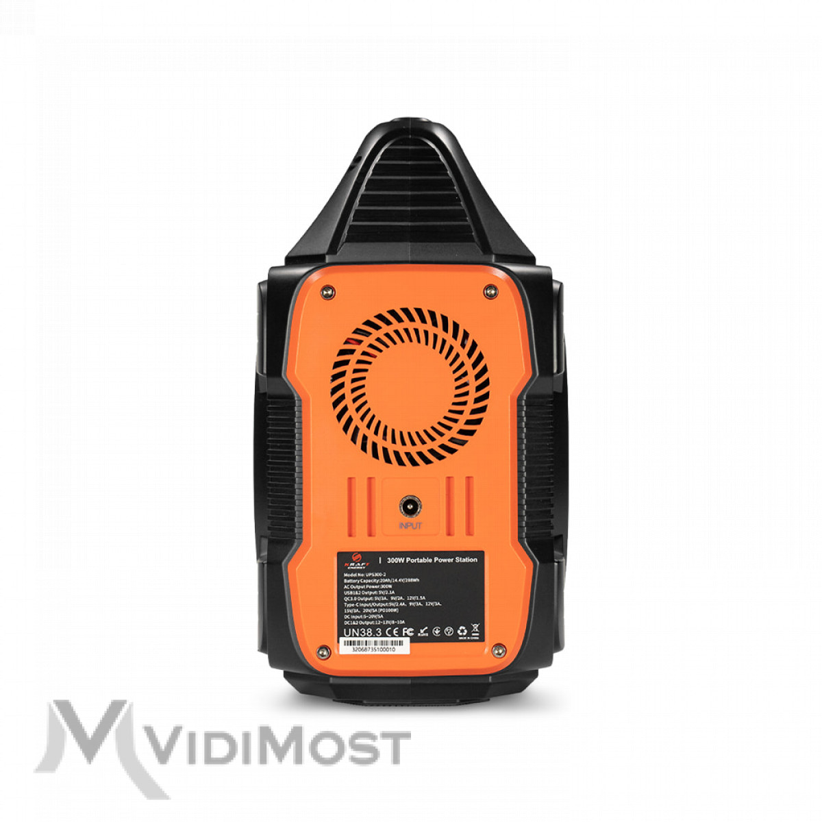 Портативна зарядна станція Kraft UPS300-2 з номінальною потужністю 300 Вт, піковою потужністю 600 Вт, з вихідною напругою 230 В (чиста синусоїда). Вбудована акумуляторна батарея Li-Ion потужністю 288 Втг (14.4В/20Аг). Зарядна станція може одночасно заряджати до 7 пристроїв (завдяки вбудованим вихідним портам). Можливість заряджання станції від електромережі (блок живлення у комплекті), від сонячної панелі до 100 Вт (слід придбати окремо) та від PD-адаптера живлення (купується окремо). Час повного заряду від електромережі 5.5-7.5 годин. Вбудований LED-прожектор.