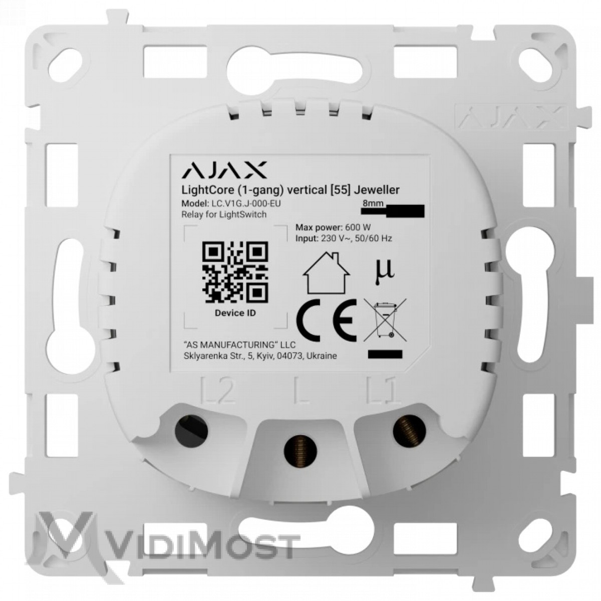 Реле для одноклавішного вимикача Ajax LightCore (1-gang) vertical