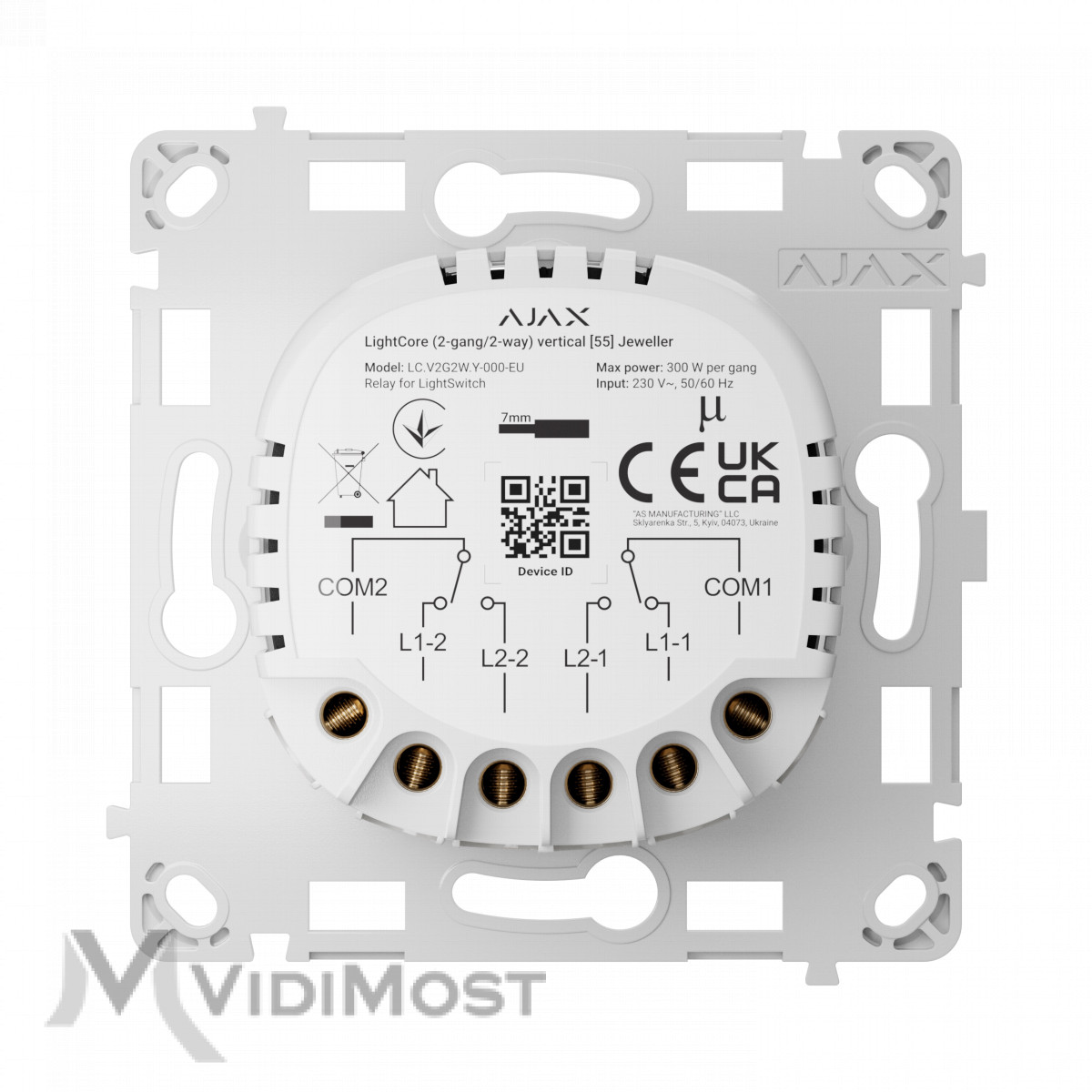 Реле для двоклавішного прохідного вимикача Ajax LightCore (2-gang/2-way) vertical