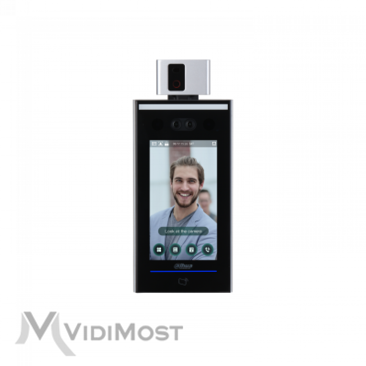 Dahua DHI-ASI7213X-V1-T1 - це термінал контролю доступу з модулем вимірювання температури тіла, який також веде облік робочого часу і має вбудовану функції розпізнавання облич. Пристрій обладнаний кольоровим РК-дисплеєм, з діагоналлю 7 дюймів і роздільною здатністю 1024 x 600, а також камерою з об'єктивом 2 Мп. Доступ до приміщення відкривається такими способами: сканування особи; карта; пароль; комбінація всіх трьох перерахованих вище методів. Функція розпізнавання осіб проводиться на відстані 0,3 - 2 м від пристрою, і здатна аналізувати людей ростом від 1,1 м до 2,4 м. Система здатна зберігати в базі до 100 тисяч користувачів, 100 тисяч карт, 100 тисяч паролів, 100 тисяч облич і до 50 адміністраторів. Пристрій підтримує інтерфейси зв'язку -TCP / IP, RS-485, Wiegand 26/34/66. Також, є вбудований USB-порт.