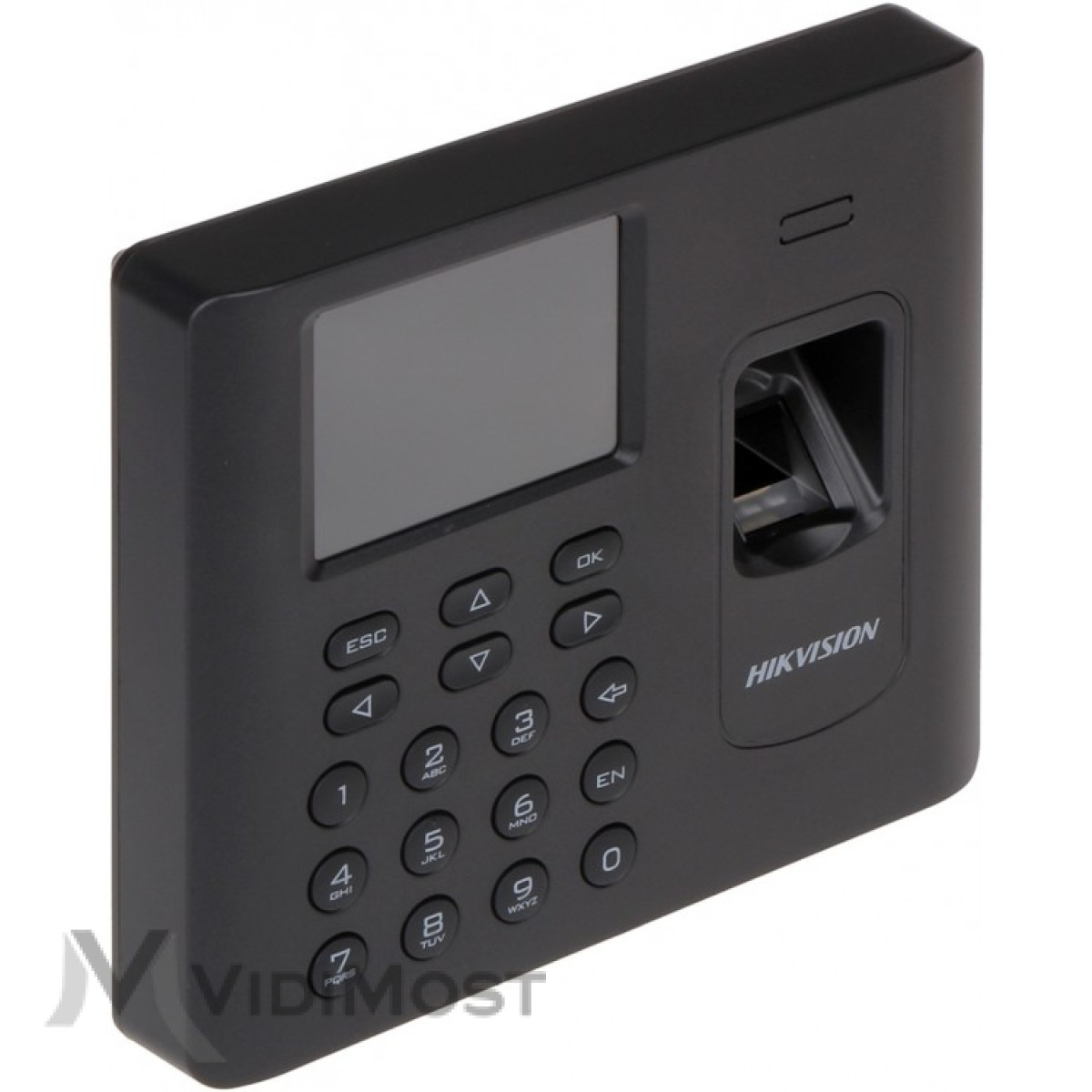 DS-K1A802MF - це пристрій для обліку робочого часу, який поєднує в собі зчитувач відбитків пальців і кодову клавіатуру. Має кольоровий 2.4 дюймовий екран. Можливі методи контролю: пароль/відбиток, тільки пароль, тільки відбиток. Корпус виконаний з чорного пластику. Оснащеній 2.8-дюймовий ЖК-екран для відображення інформації про час, дату, тиждень і відвідуваність. Підтримує віддалену реєстрацію відбитків пальців з терміналу на програмне забезпечення. Максимум 3000 користувачів, 3000 відбитків пальців і 100 000 записів подій. Два режими перевірки автентичності ідентифікації.