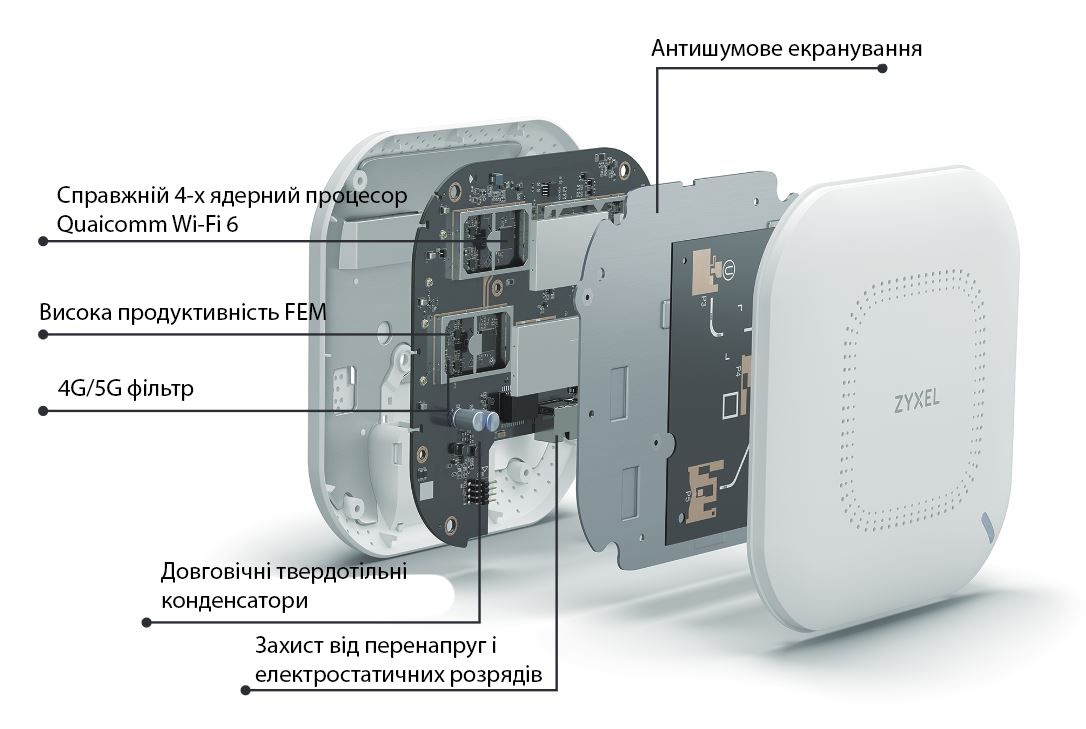 NWA110AX може похвалитися вражаючим чотирьохядерним процесором, що забезпечує безперебійну роботу з бездротовими клієнтами. NWA110AX також оснащена підсилювачами потужності преміум-класу і фільтрами перешкод від 4G / 5G мереж для забезпечення чудової якості обслуговування, що робить її однією з кращих у своєму класі.