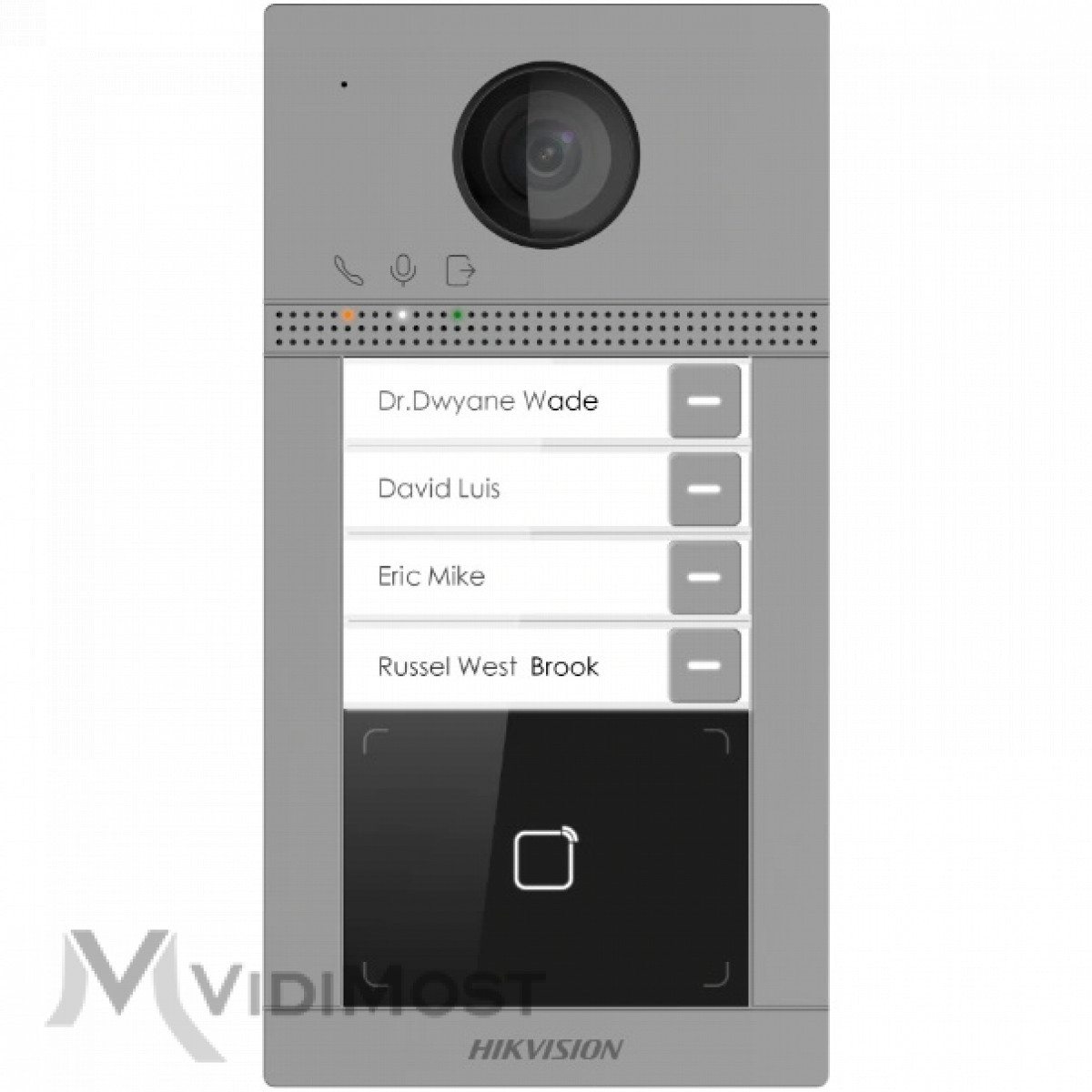 Hikvision DS-KV8413-WME1(B)/FLUSH - це відеодзвінок із 2 Мп камерою і функцією интеркома. Панель має модуль Wi-Fi на 2.4 ГГц і підключається без проводів. Чутливий всенаправленний мікрофон і динамік підтримує двосторонню аудіо зв'язок. Вбудована відеокамера має широкий кут огляду - 129º і пише відео в якості 1080р. Дзвінок має клас захисту IP65 та антивандальний захист IK08. Живлення - 12 В або PoE IEEE802.3af.