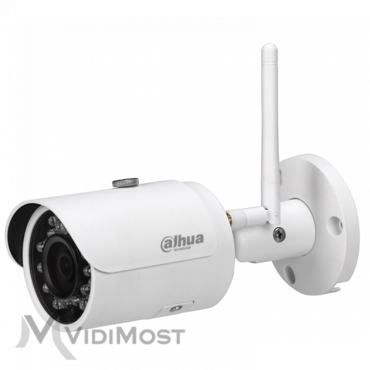 DH-IPC-HFW1435SP-W-S2 - ip-відеокамера з вбудованим модулем Wi-Fi. Вона виконана в захищеному корпусі і має всепогодний захист Ip67, а значить буде надійно функціонувати при будь-яких несприятливих умовах. Камера оснащена матрицею на 4МП, яка дозволяє записувати відео на реєстратор у високій роздільній здатності. При максимальній роздільній здатності зйомки частота кадрів становить 20 кадр / сек. Об'єктив камери має фіксовану фокусну відстань 2.8 мм з кутом огляду 97°. Також є інфрачервона підсвітка з ефективним радіусом дії 30 метрів. Живлення - 12В.