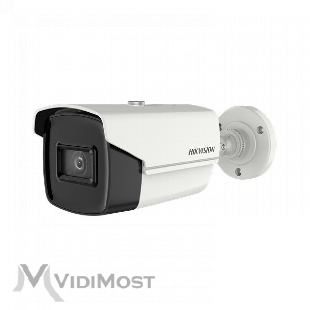 DS-2CE16D3T-IT3F - HD-TVI відеокамера з матрицею на 2 Мп. Камери такого типу підключаються, як і аналогові, через коаксіальний кабель, але можуть вести запис з високою роздільною здатністю 1080р. Об'єктив - фіксований 2.8 мм і з кутом огляду 106°. Камера також оснащена ІЧ-підсвічуванням з дальністю 50 метрів, а значить може вести зйомку і в повній темряві. Захист класу IP67 дозволить використовуваті камеру під відкритим небом. Живлення - 12 В.