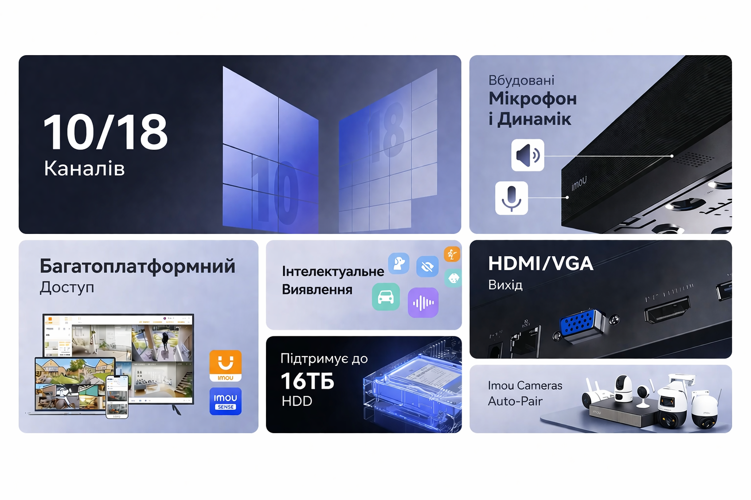 Imou NVR-N118-8A0E — оптимальний 18-канальний відеореєстратор для дому, офісу або бізнесу з підтримкою аудіо та швидкого налаштування камер.