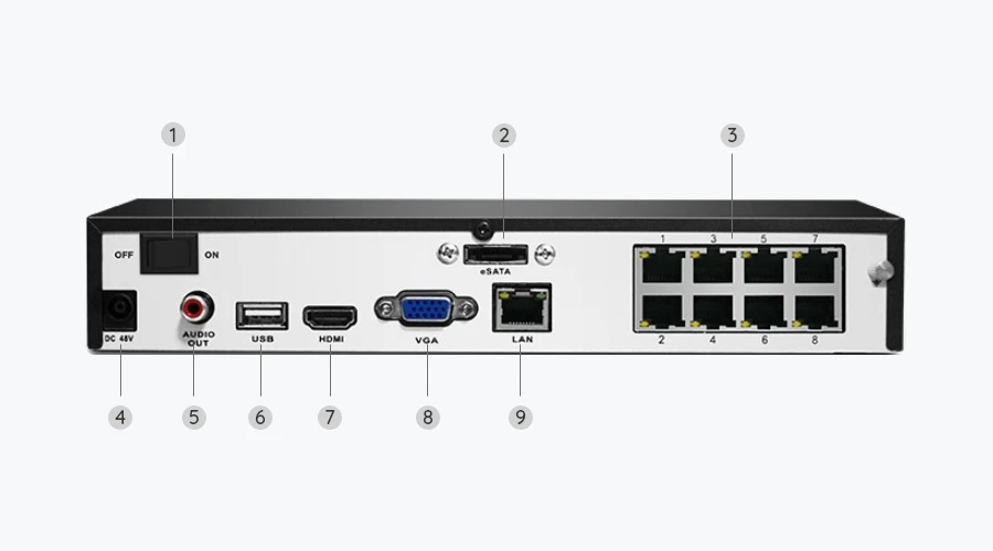 Цей відеореєстратор RLN8-410 оснащений технологією PoE (Power over Ethernet) за допомогою одного мережевого кабелю, який підключає кожну з ваших IP-камер до NVR як для живлення, так і для передачі відеосигналу. Просте підключення – процес підключення не може бути простішим для ентузіастів своїми руками.