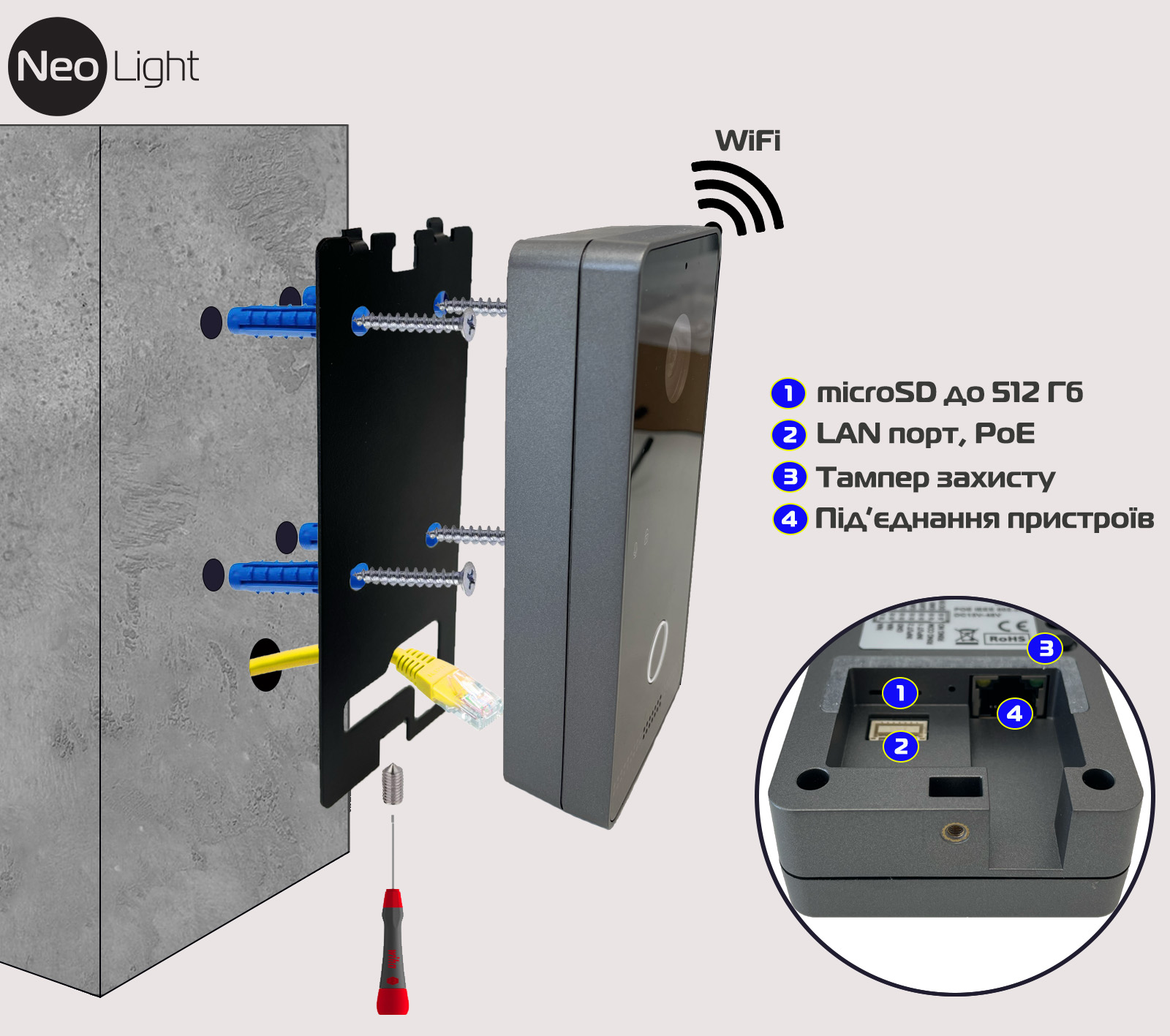 Відеопанель Optima IPW можна встановлювати як самостійно, так і разом із IP домофонами NeoLight.