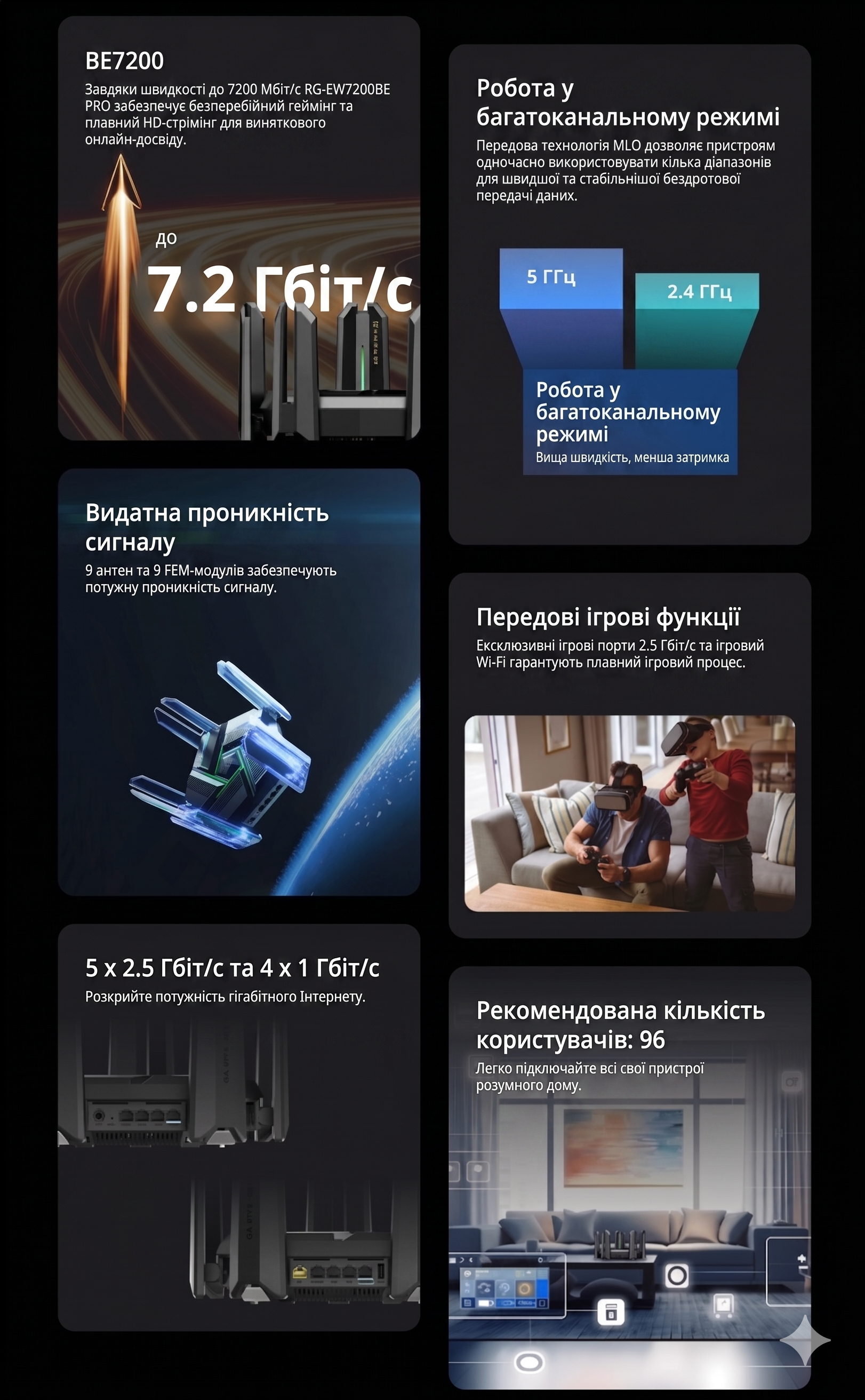 Завдяки стандарту Wi-Fi 7, RG-EW7200BE PRO пропонує технології, які раніше здавалися фантастикою: