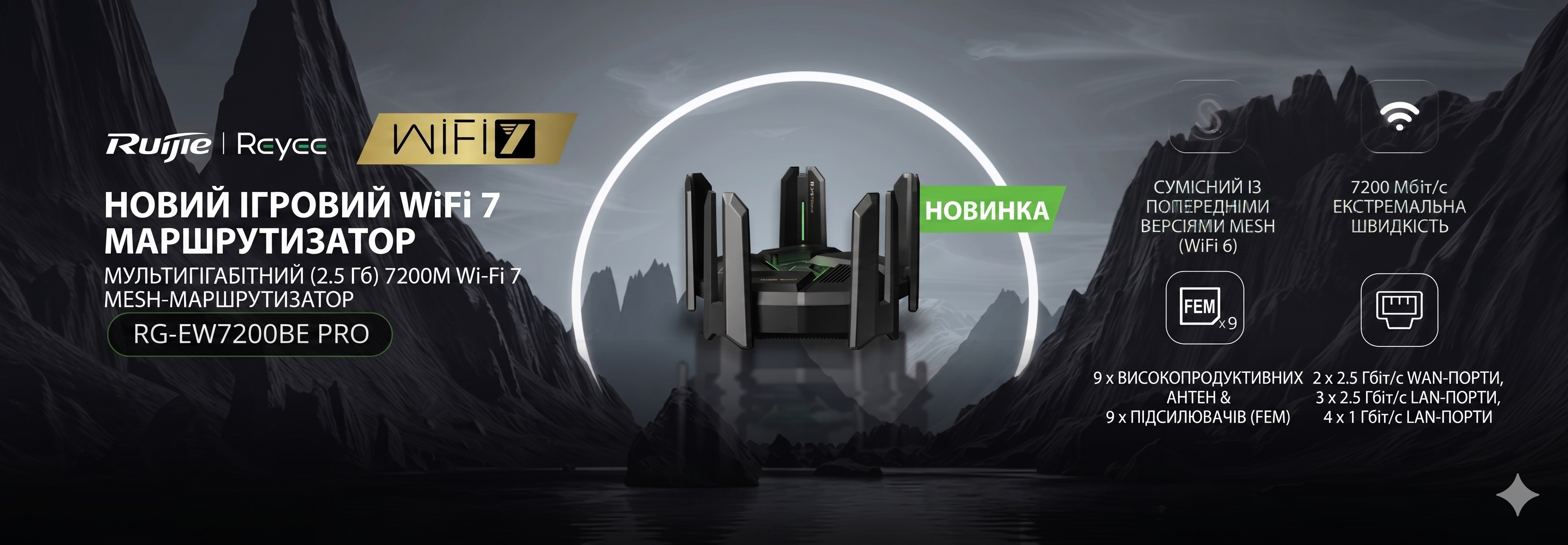 Ера Wi-Fi 7 офіційно розпочалася, і її флагманом став справжній «звір» — Ruijie Reyee RG-EW7200BE PRO. Це хмарний роутер нового покоління, який не просто роздає інтернет, а робить це на космічній швидкості до 7200 Мбіт/с. Якщо ви шукаєте пристрій, який не знає компромісів у потужності та стабільності, цей огляд саме для вас.